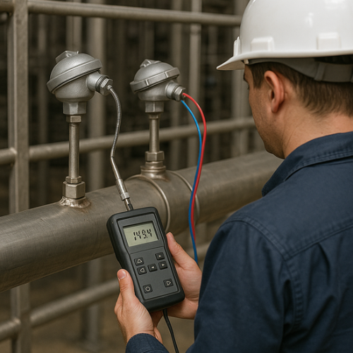 Verificación de sensores de temperatura tipo RTD y termocuplas usando patrones certificados. Reporte con trazabilidad para cumplimiento normativo.