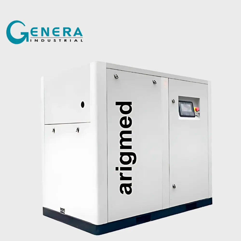 Compresor para Aire de Tornillo Libre de Aceite y lubricado con Agua con certificado ISO 8573-1:2010, diseñado para trabajo continuo y de alta resistencia.