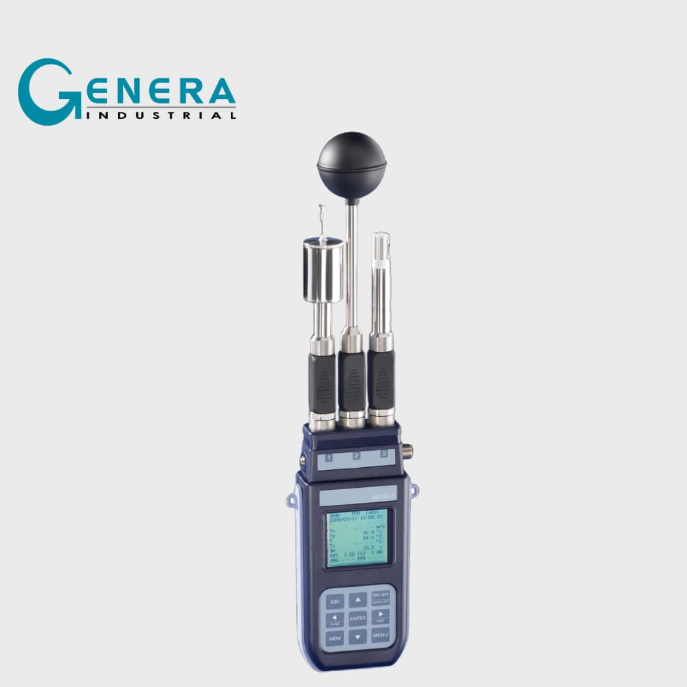 El HD32.2 es un registrador de datos de microclima térmico para la medición del índice WBGT (Wet Bulb Globe Thermometer Temperature) en ambientes calurosos, conforme a las normas ISO 7726 e ISO 7243.