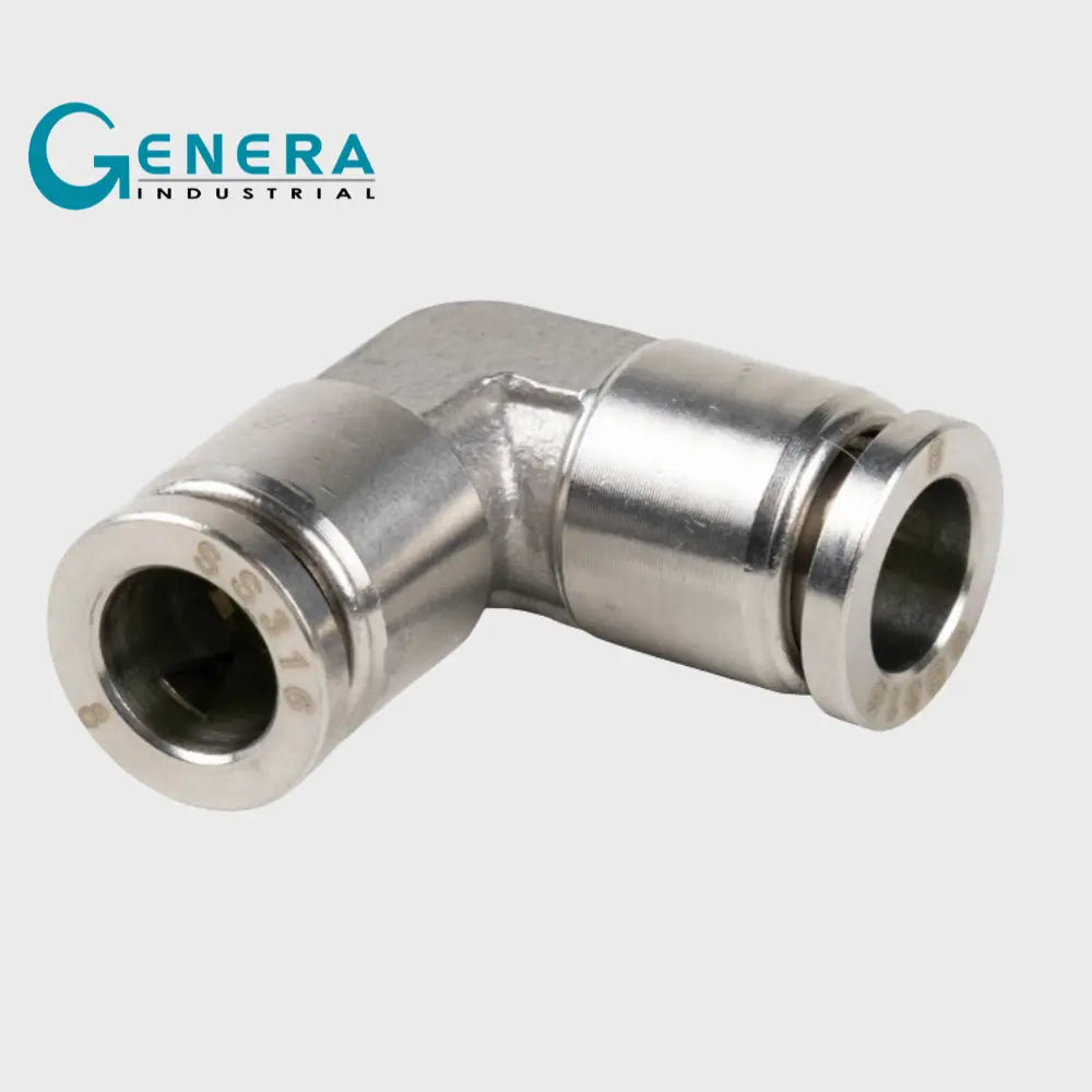 Este racor rápido en codo está diseñado para conectar dos tramos de tubería formando un ángulo de 90°, permitiendo cambios de dirección sin comprometer el flujo del sistema. Su diseño compacto y eficiente facilita la instalación en espacios reducidos, optimizando la distribución de tuberías.