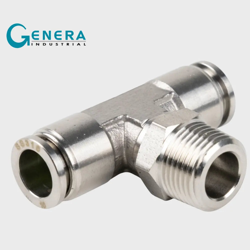 Este racor rápido en forma de te con conexión macho inferior está diseñado para facilitar la distribución del flujo en sistemas de tuberías, permitiendo la unión de tres conductos de manera eficiente y segura. Su estructura optimiza el espacio y mejora la organización en instalaciones con múltiples conexiones.