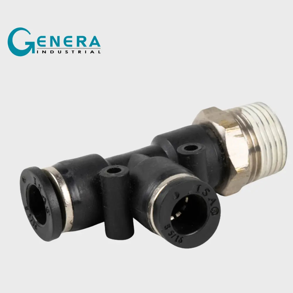 Este racor rápido te macho lateral está diseñado para ofrecer una conexión eficiente y rápida en sistemas de tuberías, permitiendo una derivación en forma de "T" en el sistema. Fabricado en bronce cromado (BRCR), proporciona una alta resistencia y durabilidad en diversas condiciones de trabajo.