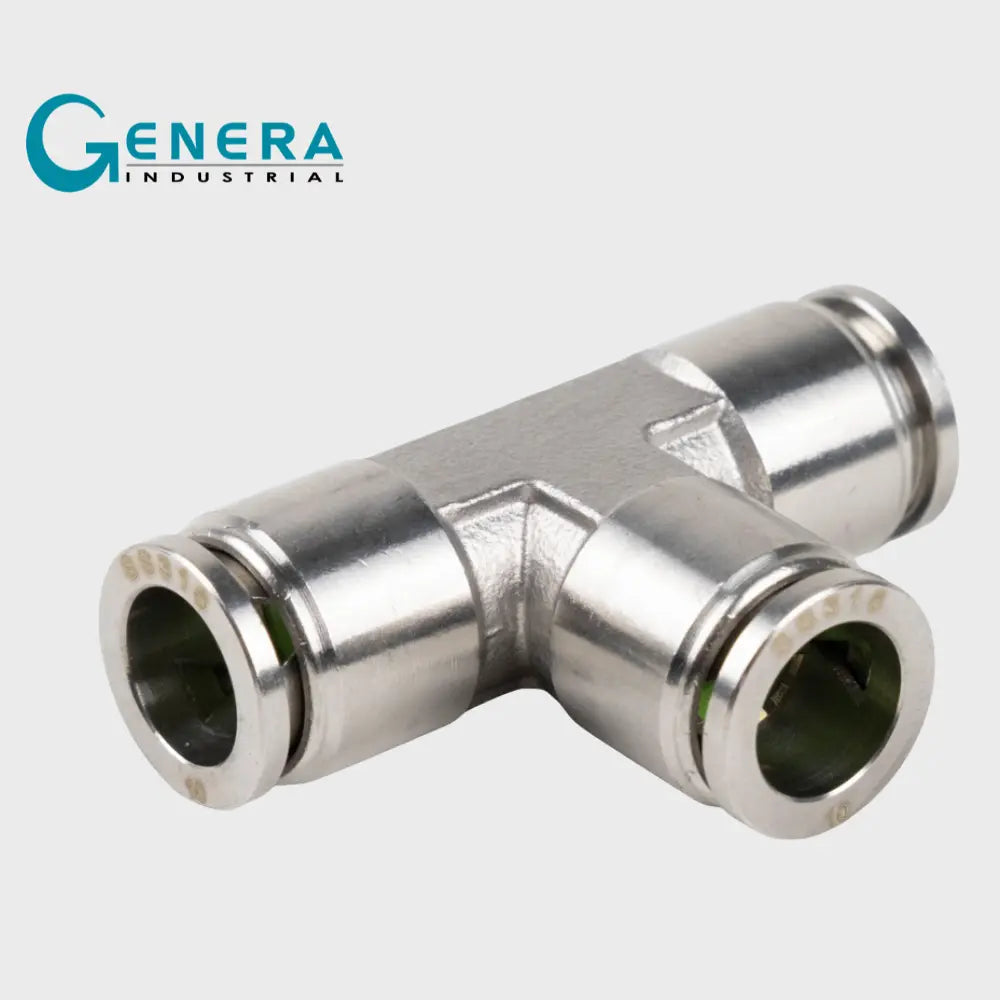 Este racor rápido en forma de te permite la distribución del flujo en tres direcciones, facilitando la conexión de tres tramos de tubería de manera eficiente. Su diseño versátil y de fácil instalación lo convierte en una solución ideal para sistemas que requieren una conexión múltiple y bien distribuida.