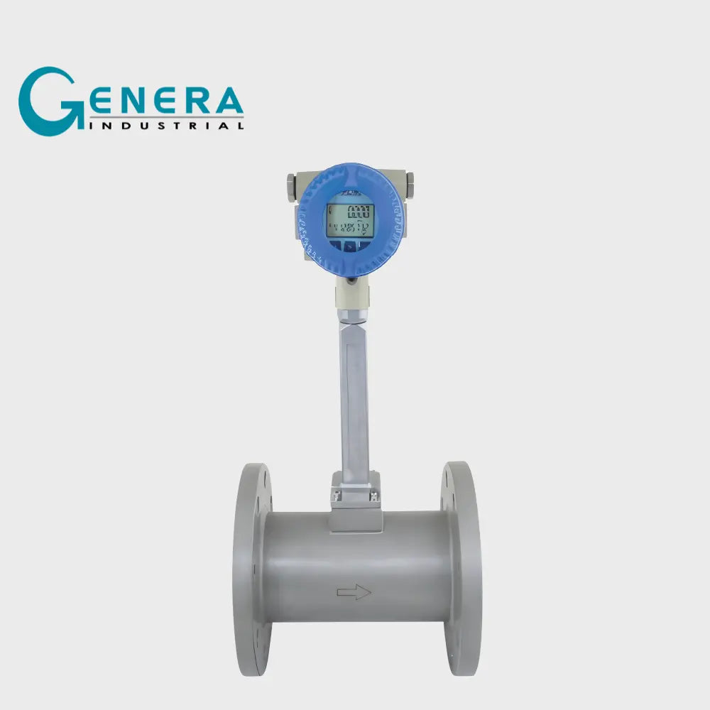 La configuración estándar incluye indicación local de caudal y totalizador, además de salida de señal 4-20 mA con protocolo HART y salida de pulsos. Su diseño con microprocesador permite filtrar señales erróneas y reducir la interferencia causada por vibraciones de la tubería.