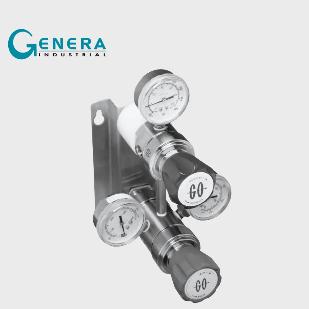 El sistema de colector conmutador de la serie COM-2B utiliza dos reguladores de acero inoxidable tipo PR-1 (tipo PR-2 en latón, opcional) integrados en un solo cuerpo, funcionando como reguladores de conmutación, con un puerto de salida común conectado a un único regulador de línea para proporcionar una presión de suministro constante e invariable, sin verse afectada por el agotamiento de la fuente de suministro. Todos los componentes están montados sobre un soporte e incluyen manómetros.